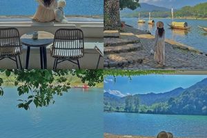 蓝天倒映在清澈的江水里