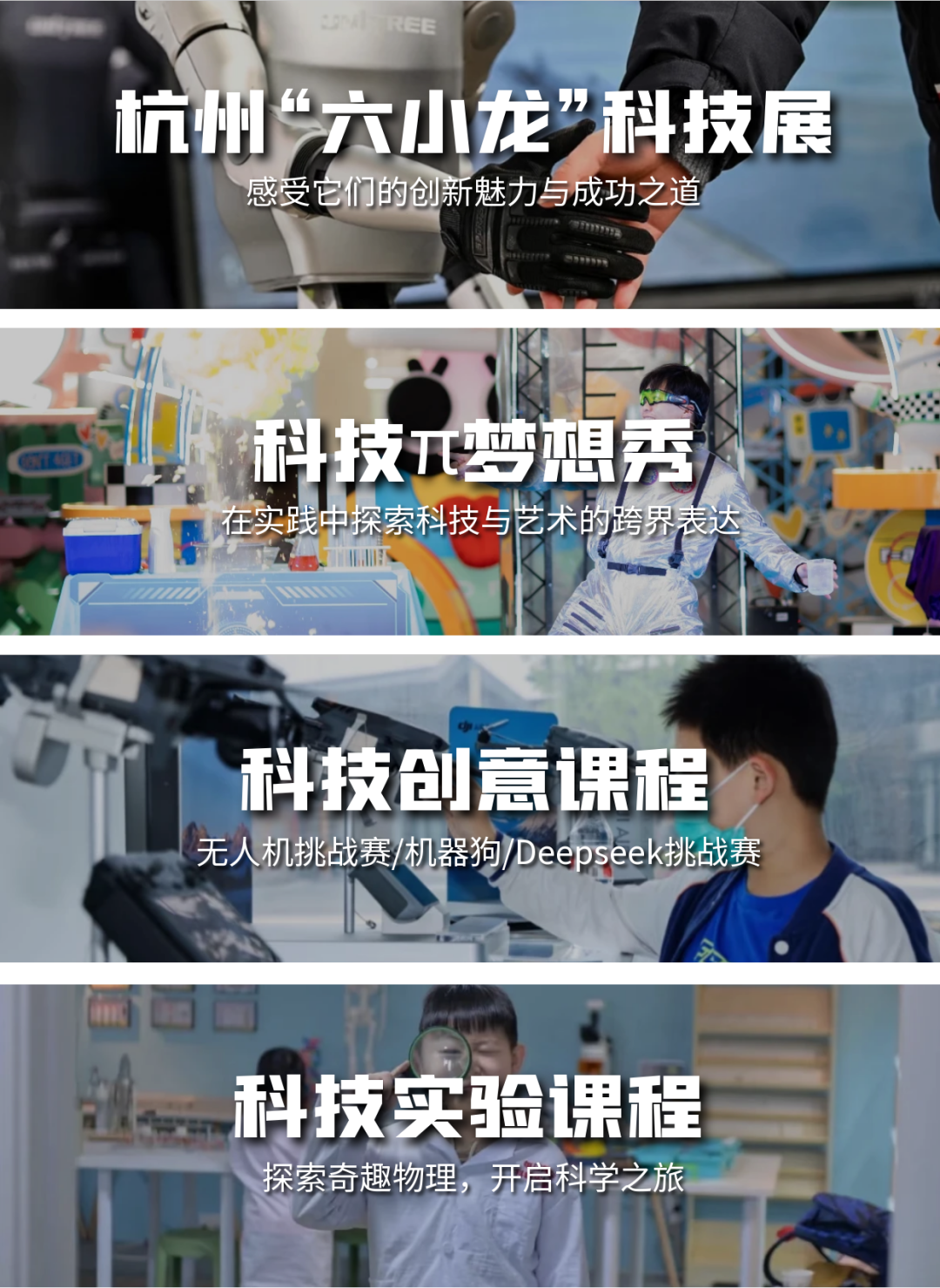 ◎ 强互动性:从脑波游戏到AR剧情,从机器狗到黑神话,从科技创新到科学实验,全程互动参与;