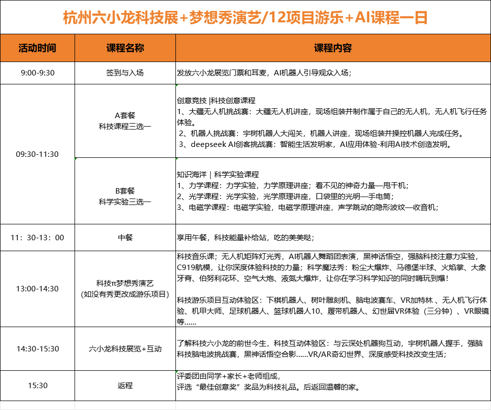 科技梦想秀演艺+科技/科学实验课程组合一日行程